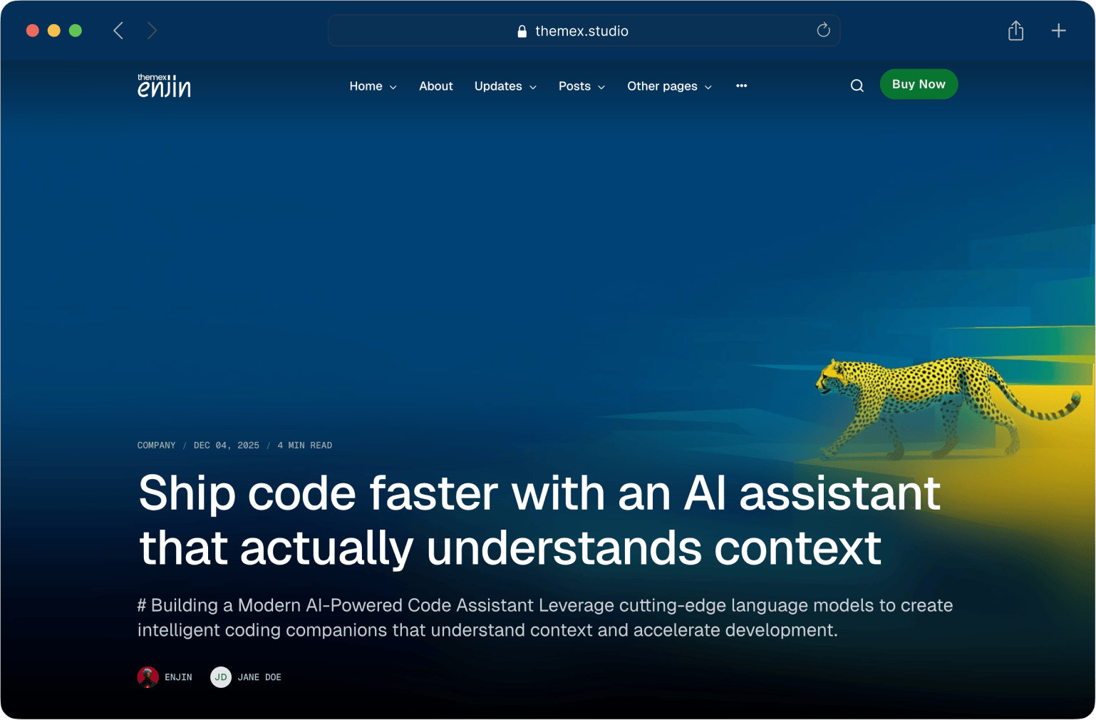 Every theme ships with documentation, demo content, and setup guides - generated by Claude, customized for each theme. Hero images and marketing assets created with Midjourney.