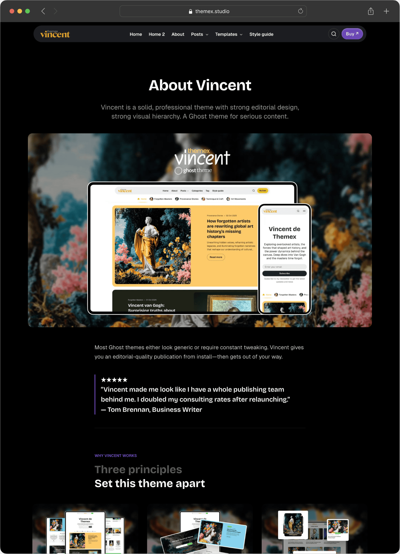 The Ghost theme market was saturated with magazine and news templates - polished for big pulication teams, not individual creators.